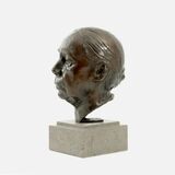 Modell 1926-36, posthumer Guss um 1970. Bronze, braun patiniert; gestufter Muschelkalk-Sockel. H. 36 cm, Sockel: H. 11 cm. An der l. Halsseite am Halsansatz der Namenszug ohne Sütterlin-z: Kollwitz, Gießerstempel: am Halsansatz hinten 2-tlg. Stempel H. NOACK BERLIN. Die Gestaltung des einzigen dreidimensionalen Selbstporträts zog sich über Jahre hin und zeigt, wie sehr die Künstlerin damit gerungen hat, ein Bildnis von sich selbst anzufertigen. Es zeigt Kollwitz als etwa 60-jährige Frau, ungeschönt, mit allen Zeichen des Alters. Die Künstlerin wirkt müde, der Blick ist nach innen gerichtet, die Gesichtszüge strahlen Ruhe und Reglosigkeit aus, nur die Stirnfalten deuten die innere Auseinandersetzung mit aktuellen Konflikten an: die Entstehung des Werkmodells fällt in die Zeit, als Kollwitz 1933 zum Austritt aus der Preußischen Akademie der Künste gezwungen und ihres Amtes als Leiterin der Meisterklasse der Grafik enthoben wurde, 1936 wurde ihr quasi Ausstellungsverbot erteilt. - Literatur: WVZ Seeler 26 - Provenienz: Privatsammlung Nordrhein-Westfalen - Graphikerin und Bildhauerin, eine der bekanntesten deutschen Künstlerinnen des 20. Jahrhunderts. Sie wurde ausgebildet an der Zeichenschule des Vereins der Berliner Künstlerinnen bei K. Stauffer-Bern, bei E. Neide in Königsberg sowie bei L. von Herterich in München. In Berlin trat sie der Sezession bei. K. ist bekannt für ihre sozial anklagenden Radierungen u. Graphik-Zyklen, u.a. 'Weberaufstand' und 'Bauernkrieg'. Seit 1910 arbeitete sie auch als Bildhauerin. Mus.: Köln (Kollwitz-Mus.), Dresden, Berlin u.a. Lit.: Thieme-Becker, Klipstein: K.K. - Verzeichnis des Graphischen Werkes 1890-1912, Knesebeck: WVZ der Graphik, Seeler: WVZ der Plastik