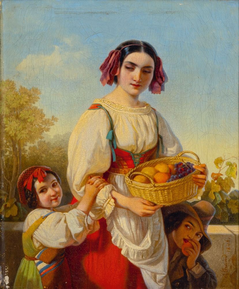 Johann Grund: Italian Women with Basket of Fruits
