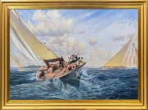2005. Oil/canvas. 100 x 140 cm. Lo. ri. sign. and dat. Uwe Lütgen 05. - Hamburg marine painter. L. initially worked as a sailor, before being trained as stage designer and restorer. His oeuvre is dominated by marine subjects. His yachting sports motif capture by their unusual points of view that give life and motion to the subjects. Mus.: Munich (Deutsches Museum), Bremerhaven (Schiffahrtsmuseum), Hamburg (Maritimes Musum) a. others.