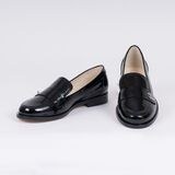 Schwarzes Lackleder. Kleines appliziertes CC-Logo in Silber am Riemen. Innen helles Leder mit Wildleder. Genähte Leder-Sohle gemarkt 'CC Made in Italy'. Ungetragen. Gr. 39,5 C. Box, Staubbeutel und Pflegehinweis-Briefchen. -