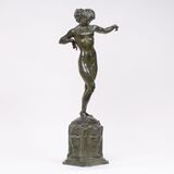 Um 1913. Bronze, grünschwarz patiniert. Auf der Plinthe sign. 'FERDINAND LIEBERMANN'. Im Sockel alter Zeitungsausschnitt von 1941 anläßlich des Todes von Liebermann. H. 61 cm. - Die Figur, von der mindestens sieben weitere Güsse bekannt sind, wurde erstmals unter dem Titel 'Komödie' 1913 auf der Intern. Kunstausst. im Kgl. Glaspalast in München ausgestellt sowie 1914 auf der Großen Berliner Kunstausst. Die vier Charakterreliefs am Sockel versinnbildlichen die seit der Antike bekannte Temperamentenlehre, die den Menschen nach vier grundlegenden Temperamenten kategorisiert, den Sanguiniker, den Choleriker, den Melancholiker und den Phlegmatiker. - Literatur: Illustrierter Kat. der XI. Intern. Kunstausst. im Kgl. Glaspalast zu München 1913, laufende Nr. 1870, S. 109 und Abb. Tafel 166; Kat. Grosse Berliner Kunstausst. 1914, Tafel 156. - Provenienz: Norddeutscher Privatbesitz seit 1. Hälfte 20. Jh. - Deutscher Bildhauer, absolvierte seine Ausbildung an der Kunstgewerbeschule und Akademie in München (bei Heinrich Waderé). Nach Studienaufenthalten in Rom und Paris eröffnete L. sein Atelier 1910 in München und erhielt im selben Jahr für eine Kleinbronze die Große Österreichische Staatsmedaille inGold. 1926 erfolgte die Professur für Monumental- und Porträtplastik in München, in der NS-Zeit erhielt er zahlreiche Staatsaufträge. Sein Werk umfasst u.a. zahlreiche Bauplastiken, Denkmäler und Brunnen, ferner war er einer der wichtigsten Figurenentwerfer der Manufaktur Rosenthal.