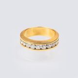 14 kt. GG, gest. Schauseitig in Kanalfassung 10 Brill. zus. ca. 1 ct. Weiß(H).P. B. 6 mm, Weite 53/54, Gew. ca. 6,8 g. -