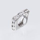 18 kt. WG, gest. Gebogte Schauseite, Besatz in Kanalfassung 10 Brill. zus. ca. 1,75 ct. Feines Weiß(G)-Weiß(H).vvs-P. Weite 54/55, Gew. ca. 11,5 g. -
