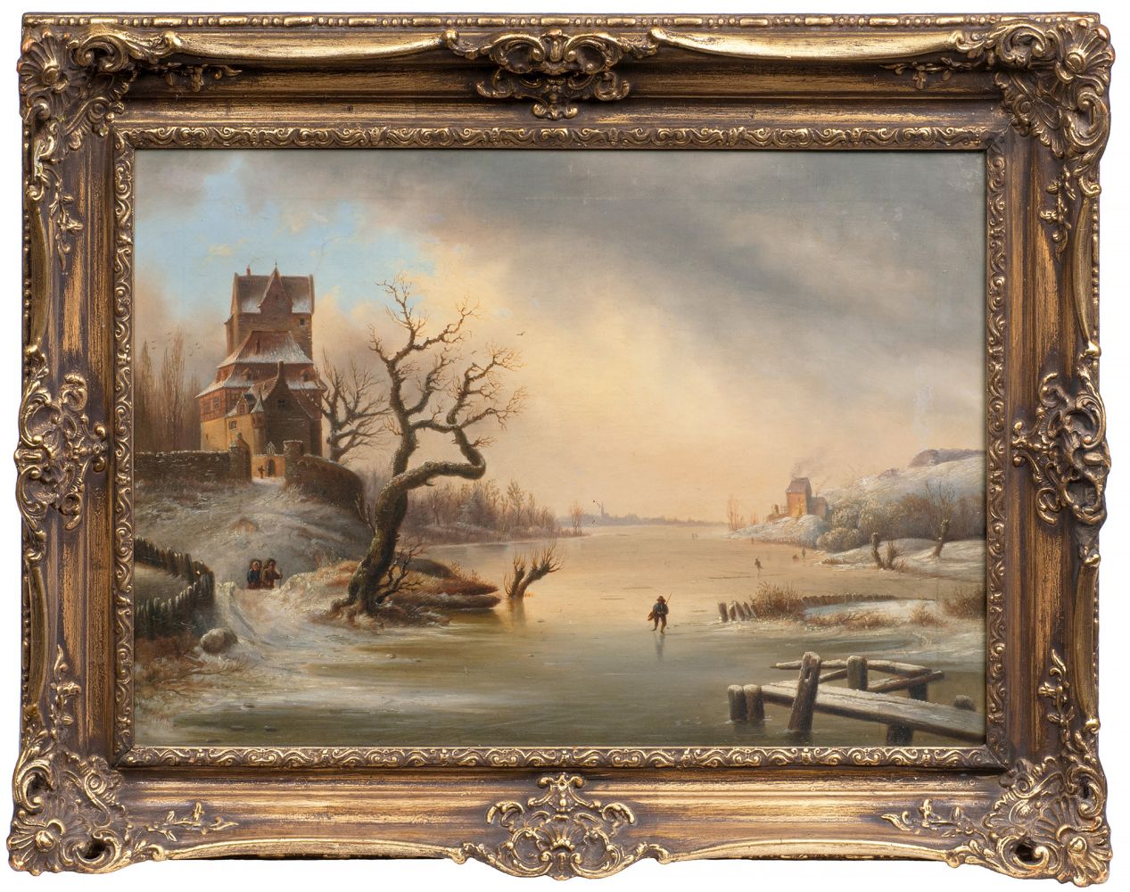 Gerhardus Meijer: Winterlandschaft mit Schlittschuhläufer