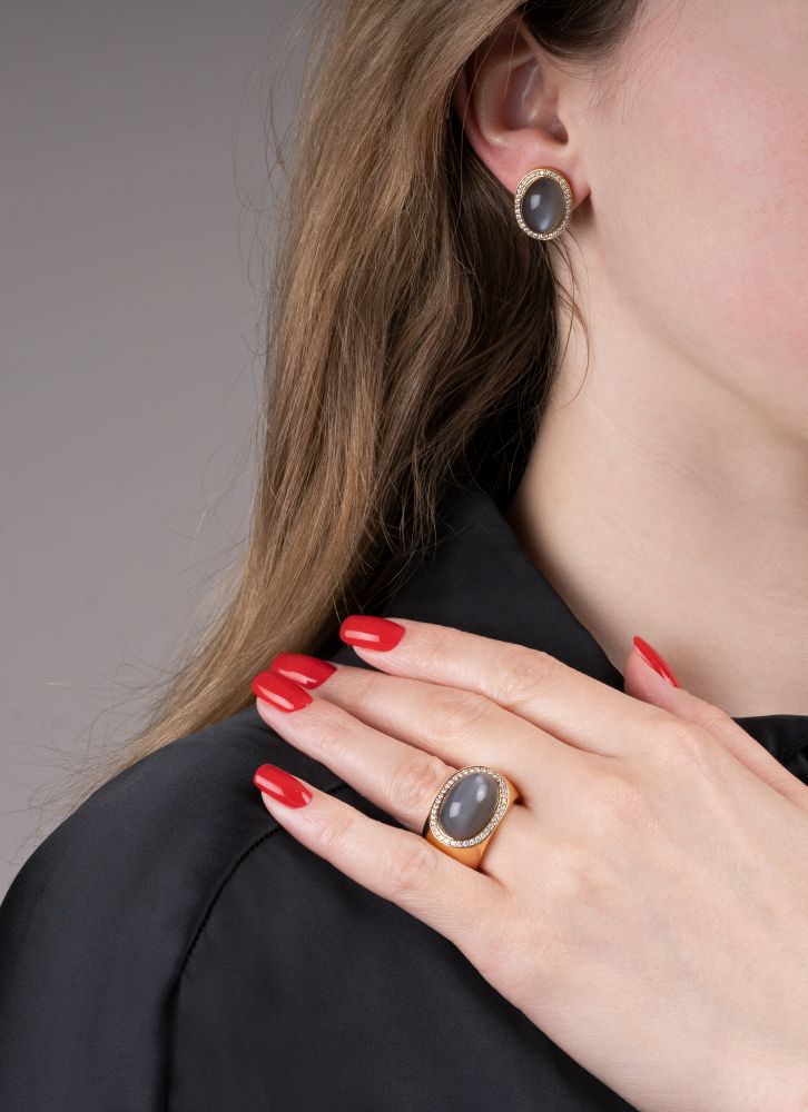 Mondstein-Brillant-Ring mit Paar Ohrclips