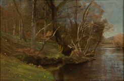 Öl/Karton/Holz. 21 x 31,5 cm. R. u. monogr. VR, verso auf Etikett des Künstlers betitelt. - Hamburger Landschafts- und Architekturmaler. R. studierte an der Münchner Akademie sowie als Schüler von J. W. Schirmer an der Düsseldorfer Akademie, darauf lebte er einige Jahre in Italien. Spätromantische aber niemals sentimentale Landschaften Italiens und Norddeutschlands prägen sein Oeuvre. Mus.: Hamburg (Kunsthalle, Altonaer Mus.), Berlin, Bremen, Breslau, Flensburg, Kiel u.a. Lit.: Thieme-Becker, Der Neue Rump u.a.