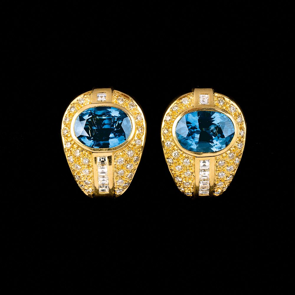 Paar Saphir-Diamant-Ohrringe - Bild 1 Paar Saphir-Diamant-Ohrringe - Bild 2