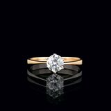 14 kt. Gold, rhodiniert. In Krappenfassung der Solitär im Brillant-Schliff ca. 0,90 ct. Feines Weiß(G).P. Weite 58, Gew. ca. 2,3 g. -