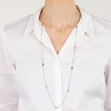 18 kt. WG, gest. MZ: Bulgari. Umlaufend mit 11 kleinen 'Parentesi' Emblemen (5 x 19mm). Zierliche Ankerkettenglieder, Karabinerschließe. B. 1,5 - 5 mm, L. 90,3 cm. Gew. ca. 21,4 g. -