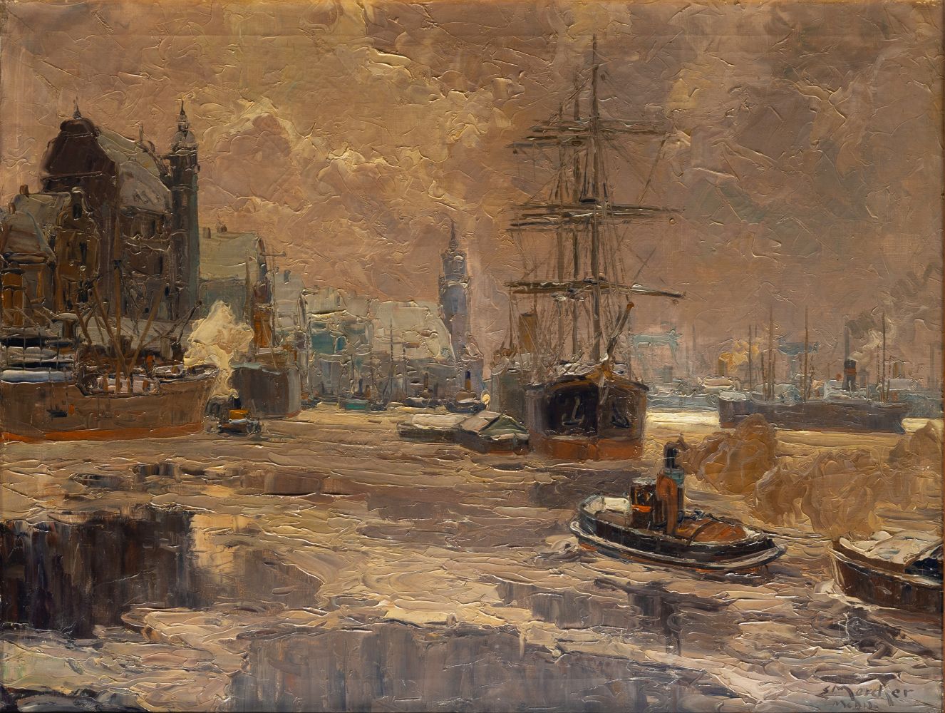 Öl/Lw. 65,5 x 85 cm. R. u. sign. E. Merker Mchn, auf dem Keilrahmen betitelt. - Deutscher Landschaftsmaler, tätig in München. M. malte bevorzugt impressionistische Industrielandschaften, aber auch Ansichten von Hamburg. Werke des Künstlers befinden sich u.a. im Verwaltungsgebäude der Hamburg-Amerika-Linie in New York. Auf der Pariser Weltausstellung 1937 gewann er die Große Goldmedaille. Lit.: Vollmer u.a.