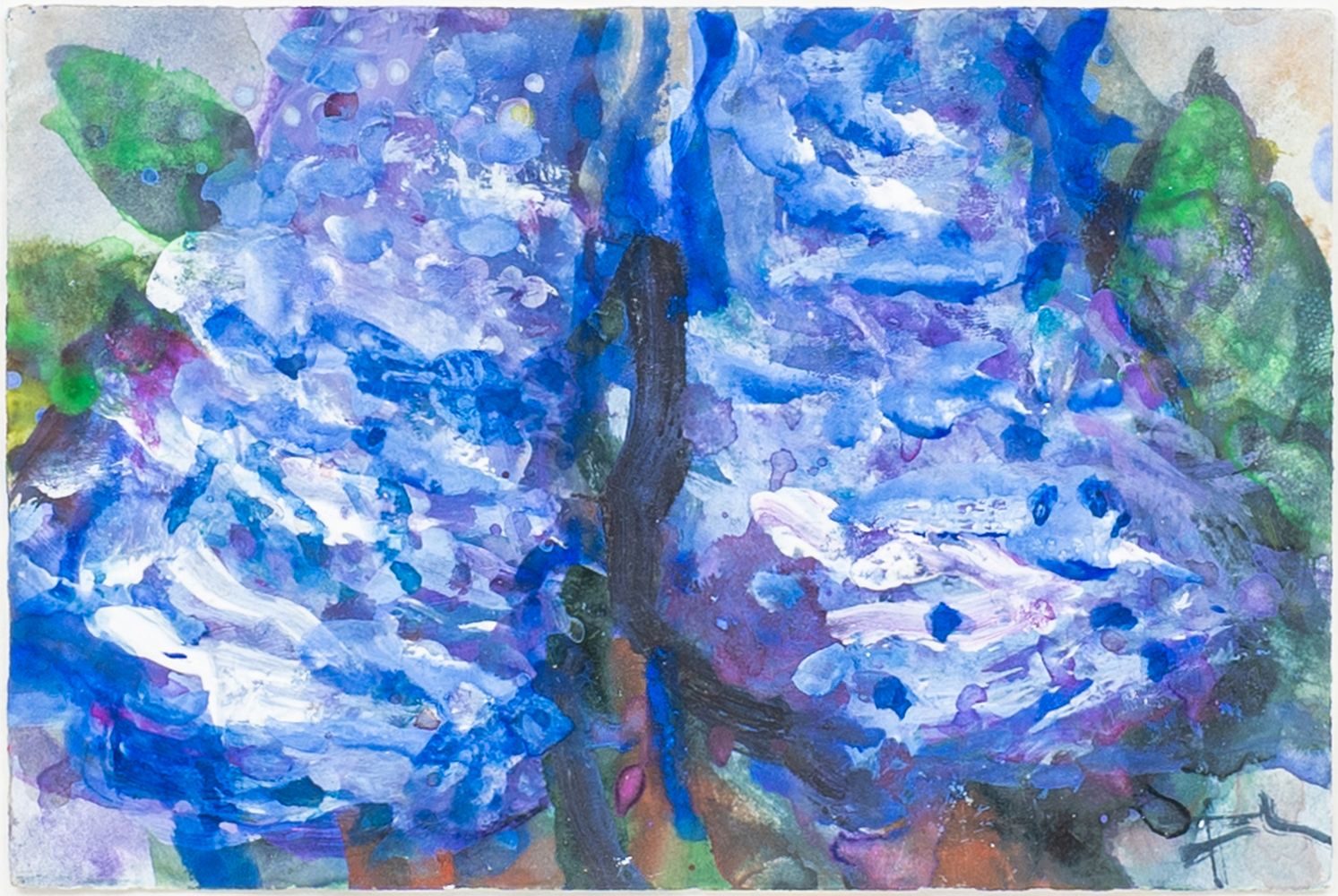 2022. Tempera. 10 x 15 cm. R. u. sign. Fußmann, verso sign. und dat. Fußmann 22, unter Glas gerahmt. - Deutscher Landschafts- und Blumenmaler. F. studierte an der Folkwang-Schule Essen und der Hochschule für Bildende Künste Berlin, wo er 1974 auch eine Professur erhielt. F. wurde mit vielen nationalen und internationalen Auszeichnungen geehrt. Er stellte u.a. in der Neuen Nationalgalerie in Berlin aus. Von ihm stammt die Ausmalung der Decke im Spiegelsaal des Museums für Kunst und Gewerbe Hamburg.