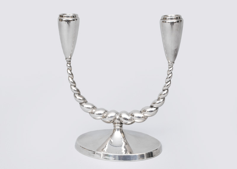 Moderner, 2-flammiger Leuchter mit gekordeltem Schaft