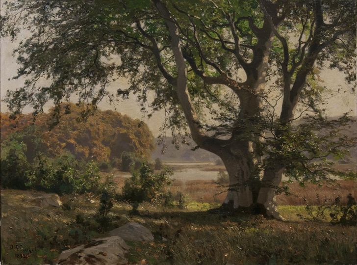 Öl/Lw., 55 x 72 cm, l. u. sign. und dat. P. Flickel 1898. - Deutscher Landschaftsmaler. F. studierte 1871-73 an der Kunstschule Weimar bei M. Schmidt und Th. Hagen. Bis 1876 war er in Düsseldorf, danach in Berlin tätig, wo er 1894 Professor wurde. Nach zahlreichen Reisen dominierten in seinen Anfangsjahren italienische Motive, später wandte er sich deutschen Landschaften zu. Mus.: Berlin (Nat.-Gal.), Hamburg (Kunsthalle), Weimar u.a. Lit.: AKL, Thieme-Becker u.a.