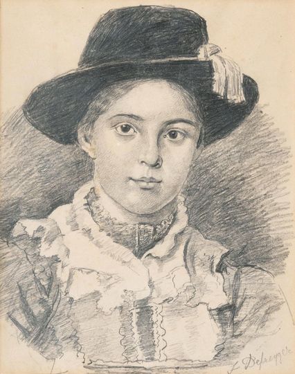 Bleistiftzeichnung, 25,5 x 20,5 cm, r. u. sign. F. Defregger, unter Passepartout und Glas gerahmt, ungeöffnet. - D. ist einer der populärsten Figuren- und Historienmaler des ausgehenden 19. Jhs. Er erhielt seine Ausbildung bei H. Dyck und H. Anschütz in München. Nach einer Paris-Reise war er von 1865 bis 1870 Mitarbeiter im Atelier von Piloty. Mus.: München (Neue Pinakothek), Berlin, Frankfurt, Innsbruck, Wien, Prag u.a. Lit.: Thieme-Becker, Bénézit u.a.