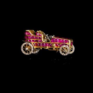 Rubin-Brillant-Kettenring mit passenden Ohrringen