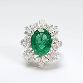 Hochkarätiger Smaragd-Ring mit Triangel-Diamanten