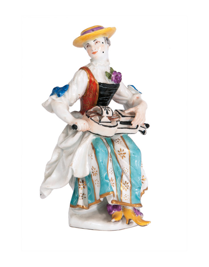 Seltene Figur "Drehleierspielerin"
