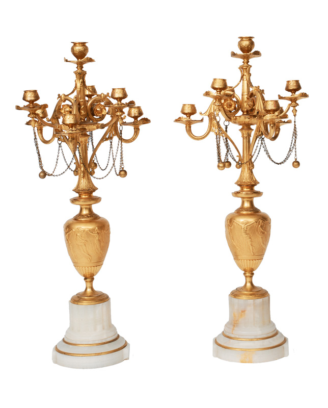 Paar Napoleon-III Girandolen mit antikisierendem Götter-Fries