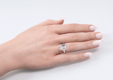 18 ct. white gold, marked, MM. The diam. of fine brilliance 8,620 ct. Slightly Tinted White(I).vs2. (13.94 x 10.59 x 6.65 mm, very good polish, no 'nil' fluorescence). Size 53, weight approx. 6,6 g. Details according to HRD report from October 2004. -