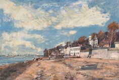 1969. Oil/fibre board. 53,5 x 78 cm. Lo. ri. sign. and dat. E. Wessel 69. - Hamburg landscape and portrait painter who also painted still lifes and nudes. W. studied at the Hamburg art school under A. Illies, After travelling Europe he founded the painting school 'Atelier Mensch' in Hamburg. Mus.: Hamburg (Kunsthalle, Altonaer Mus.), Munich, Warsaw. Lit.: Vollmer, Der Neue Rump, Heydorn a. others.