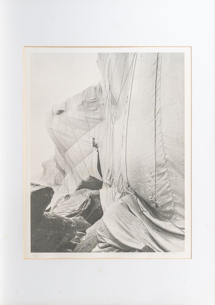 Offset. 65 x 50 cm. Matted and unframed. Lo. ri. autographed Christo, lo. le. num. 28/50. - Environmental artist, most famous for wrapping the Berlin Reichstag.