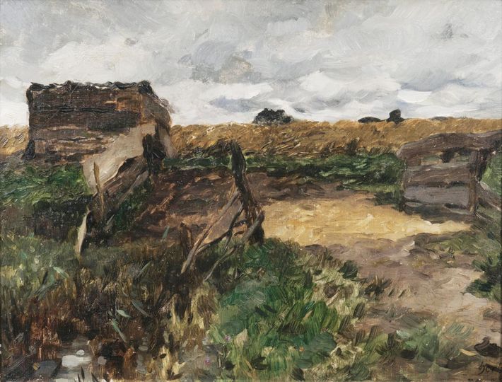 Oil/paper/cardboard, 32,5 x 44 cm, lo. ri. estate stamp. - Literature: Cat. rais.: Meyer-Tönnesmann 743. - Important German impressionist, studied at the Frankfurt, Berlin and Weimar Academies, study trips to Munich, the Netherlands and Paris, where he shared a studio with Liebermann, contact with the Leibl circle, co-founder of the Hamburgischer Künstlerclub, acquainted with Munch. Mus.: Hamburg (Kunsthalle, Altonaer Mus.), Berlin (Nat. Gall.), Kiel, Oldenburg, Husum. Lit.: C. Meyer-Tönnesmann: Th. H. Werkverzeichnis der Gemälde, Ölstudien und Aquarelle, 2015, Der Neue Rump, Thieme-Becker, Vollmer, Boetticher a. others.