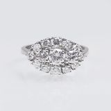 14 ct. white gold, marked. With 15 prongset round brillant cut diam. in total approx. 1,46 ct. Rare White(G)-White(H).vvs. (in the center approx. 0,35 ct.). Size 55, weight approx. 5 g. Jeweller Pass from 1994 by Jeweller Kuhnert, purchase price 7.094 DM. -