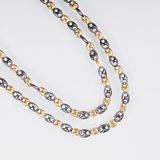 Around 1960. 18 ct. yellow gold, marked with metal. Yellow gold and blackened metal chain links alternating. W. 7 mm, l. 90 cm, weight approx. 92 g. -