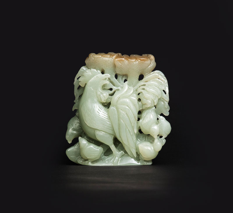 A jade carving with cockerel and poult