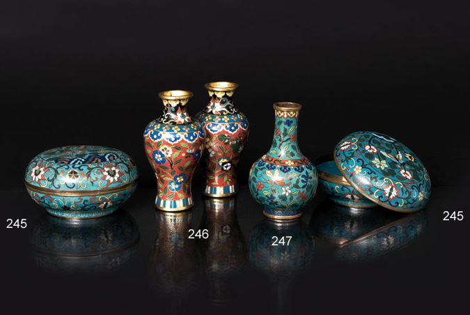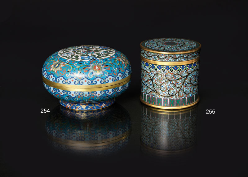 A set of 2 cloisonné 'butterfly' boxes with cover