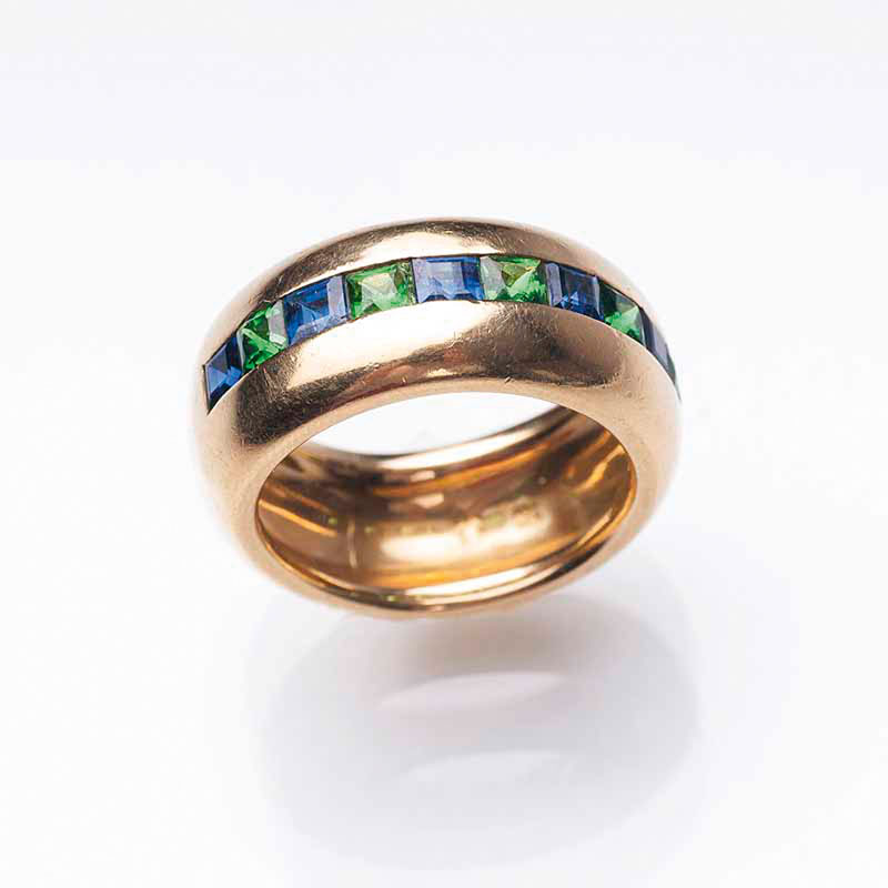 A ring with sapphires and tsavoriths by Jeweller Hansen